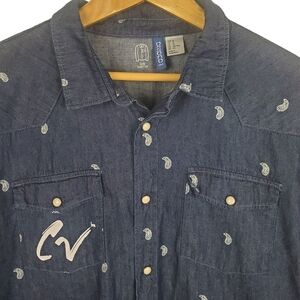 H&M Divided Denim Paisley Button-Down Shirt. Pearl Snaps. Women's XL. F0079