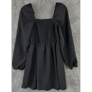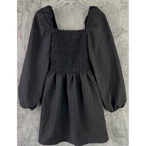 H&M Divided Dress Small Black Puffy Sleeves Pullover Smocked Gothic Witchy Goth