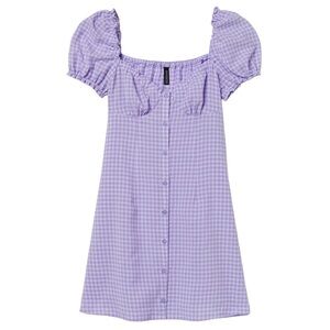 H&M divided women’s a line square neck mini dress in purple gingham pattern. Size XS.