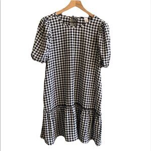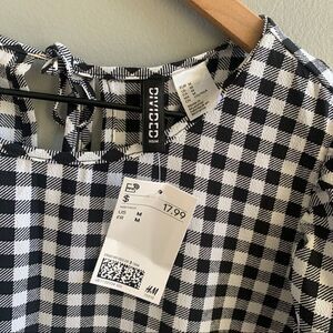 H&M Divided Gingham Check Black and White Babydoll Dress Short Sleeve NWT Medium