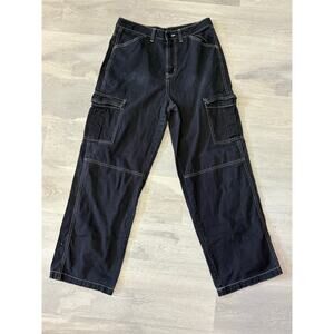 H&M Divided Gray Straight Cargo Pants Dark Wash Side Pockets Women's Size 6