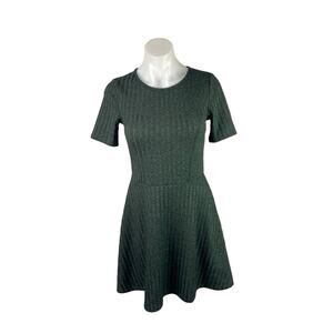 H&M Divided Green Rib Knit Crewneck Short Sleeve Mini Skater A-Line Dress Size 4