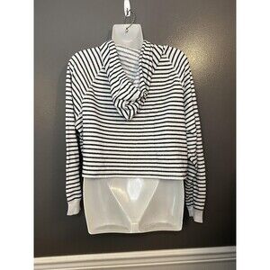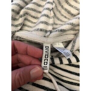 H&M Divided Hoodie Womens Medium Black White Striped Cropped Pullover Raglan