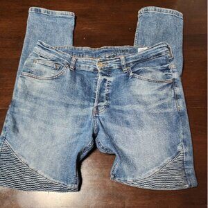 H&M Divided Jeans Size 36 Moto Skinny Mens Stretch Blue Denim