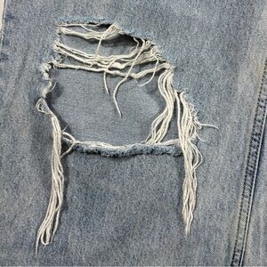 H&M Divided Light Denim 90S Baggy High Waisted Wide Leg Distressed Knee Jeans