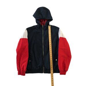H&M Divided Mens M Full Zip Blue Red White Hooded Full Zip Windbreaker Jacket