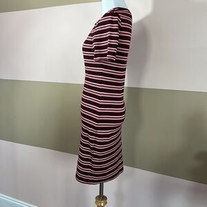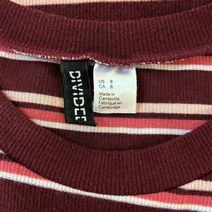 H&M Divided Midi T-Shirt Dress Medium Fitted ribbed Striped Pink maroon Crewneck