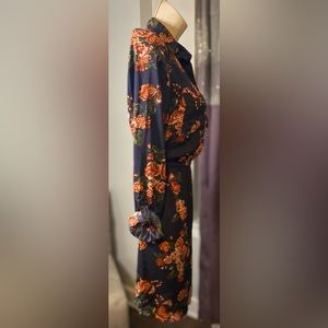H&M Divided Navy Blue Orange Floral Shirtdress 2