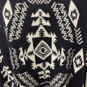 H&M Divided Navy and White Native Design Fringe Poncho, size Small
