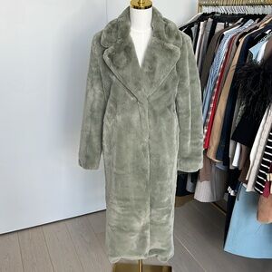 H&M Divided Pale Green Faux Fur Coat Jacket Size XS