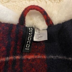 Cute, blue & red, plaid, H& M Divided, zip up, Winter Jacket with a quilted lining and faux fur collar with buckles