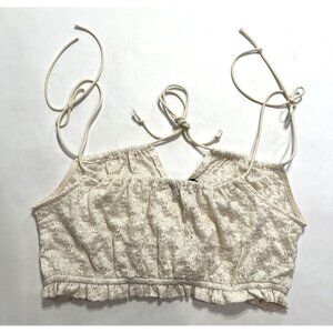 H&M Divided Pointelle Tie Strap Crop Top in Cream