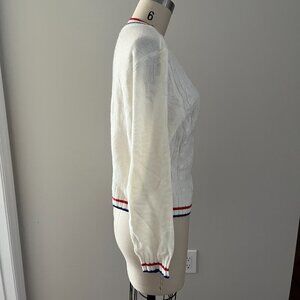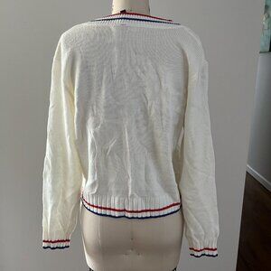 H&M Divided Preppy Cream Blue Red Varsity Sweater Stripe V Neck Long Sleeve Med