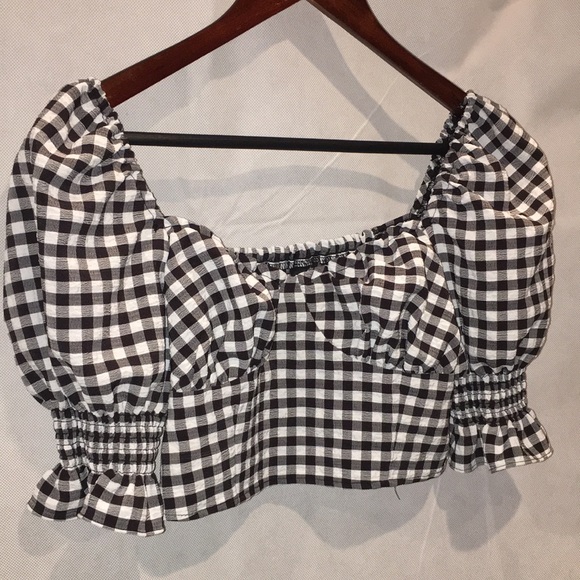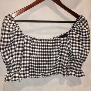 H&M Divided Puff Sleeve Crop Top | Black And White | Size S