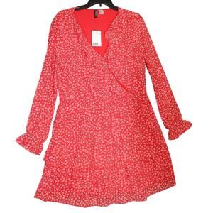 H&M Divided Red Floral Tiered Ruffle Dress NWT Size Large