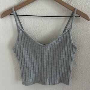 H&M Divided Ribbed Crop Tanks Gray Pink Small