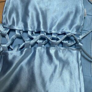 H&M Divided Satin Corset Lace Up Cropped Top Light Blue Size Small