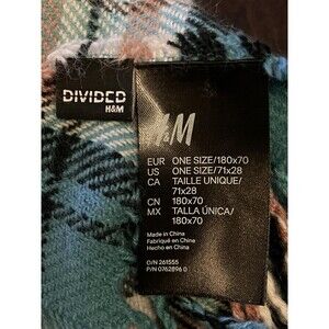 H&M Divided Scarf Womens One Size Blue Plaid Oversized Fringe 71x28 Acrylic