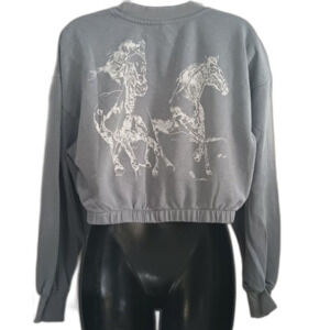 H&M Divided Shirt Size L Cropped Sweatshirt Horse Pattern on Back Athleisure Top