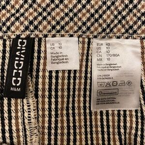 H&M Divided Side Button Plaid Cotton Hounds Tooth Skirt Size 10