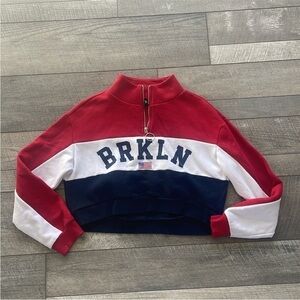 H&M Divided Size Small Red, White, and Blue Brooklyn 1/4 Zip Pullover Sweatshirt