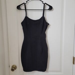 H&M Divided Size XS Washed Black Spaghetti Strap Bodycon Denim Jean Dress