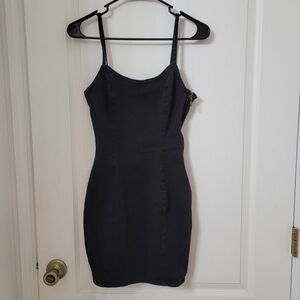 H&M Divided Size XS Washed Black Spaghetti Strap Bodycon Denim Jean Dress