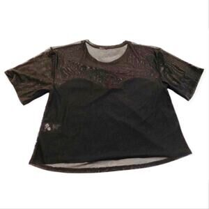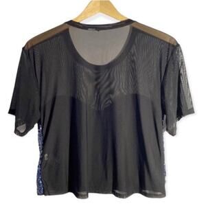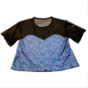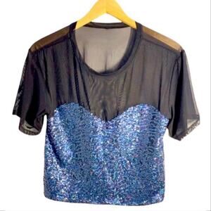 H&M Divided Small Sheer Black Mesh & Blue Sequins Crop Top