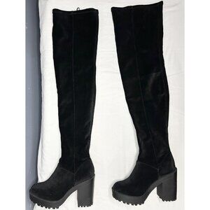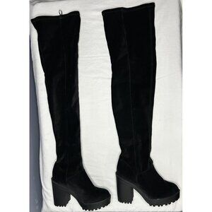 H&M Divided Sock Boots Womens 5.5 Black Thigh High Over Knee Block Heel Lug Sole
