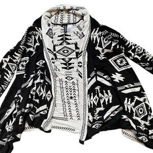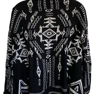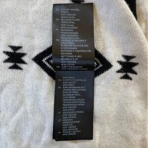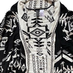 H&M Southwestern print open cardigan. Cream and black colors, with inverted color scheme on inside. 55% acrylic, 45% cotton. Machine wash cold, lay flat to dry
