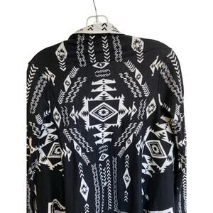 H&M Southwestern print open cardigan. Cream and black colors, with inverted color scheme on inside. 55% acrylic, 45% cotton. Machine wash cold, lay flat to dry