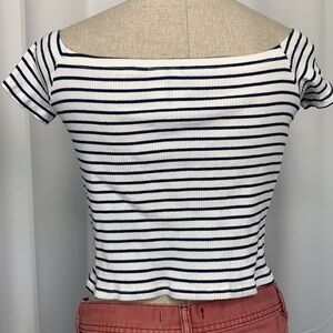 H&M Divided Striped Stretch Short Sleeve Crop Top - White/Blue, Size Medium