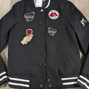 H&M Divided Varsity Jacket Womens 2 Black Long Sleeve Patches Riot Girl Vampire