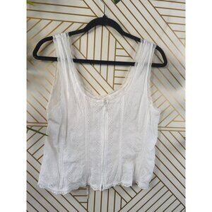 H&M Divided White Eyelet Zip Up Back Corset Top Sleeveless Lace Up Size 14
