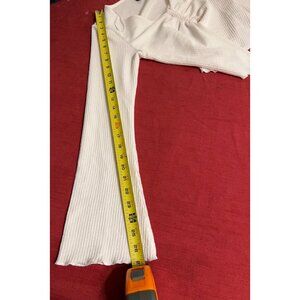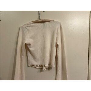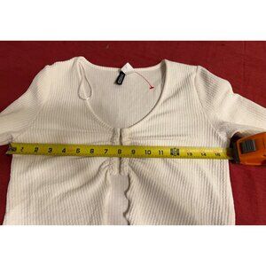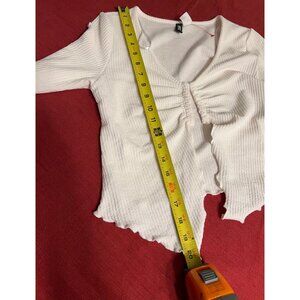 H&M Divided White Ribbed Long Sleeve Crop Top Ruched Front Lettuce Hem Size M Y2