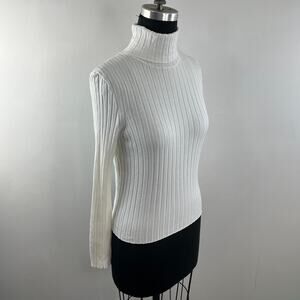 H&M Divided White Sweater Ribbed Knit Turtleneck Long Sleeve Pullover Sz Medium