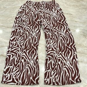 H&M Divided Zebra Print Wide Leg Pants – Brown & White – Size S