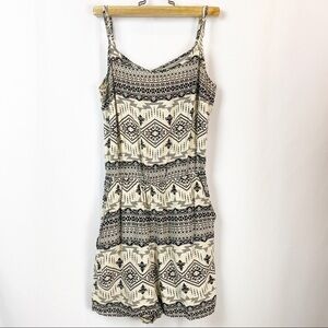 Woman’s Size 4 Black White Romper Shorts Aztec Print Spaghetti Straps