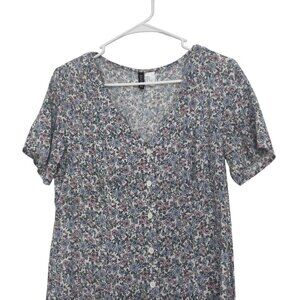 H&M Divided Women Floral Viscose Button-Up Mini Dress SZ M Summer Casual