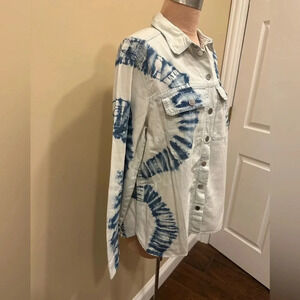 H&M Divided Women’s Blue Tie Dye Denim Shacket Button Jean Jacket Size Medium