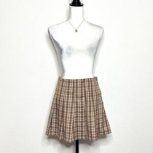 H&M Divided Brown Plaid Pleated Mini Skirt - Size 10