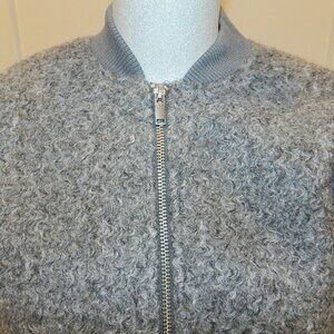 H&M Coated jacket in gray. Zipper front closure. Silver hardware. Short, lightly padded bomber jacket in a coated, woven fabric with a small, ribbed collar and a zip down the front. Loose fit with dropped shoulders, welt front pockets, a zipped sleeve pocket and ribbing at the cuffs and hem. Lined. See pics for additional description.