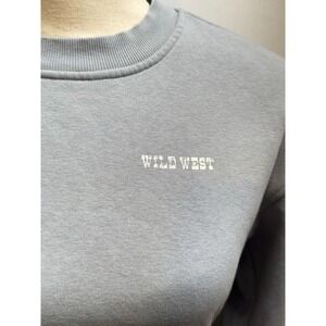 Design: Light Gray with "WILD WEST" printed in small white letters on the upper left chest. Cropped length with an elasticized hem.
