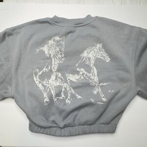 HM Divided Womens Gray Top Cropped Long Sleeve Western Style Size:XS