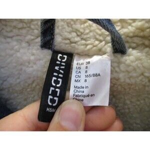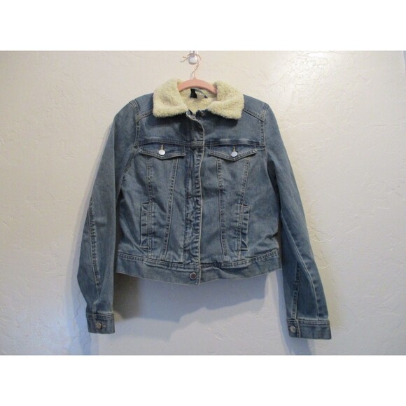 H&M Divided Womens Sz 8 Sherpa Lined Denim Jacket Blue Jean Coat Full Zip