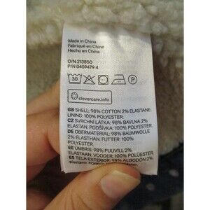 Material: 98% cotton, 2% elastane shell; 100% polyester lining