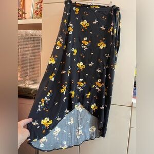 H&M Divided Wrap Skirt Black Floral Straight Size 10