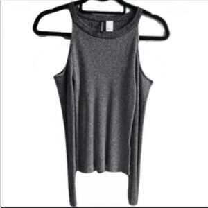 H&M Divided cold shoulder long sleeves gray/ silver ribbed top. XS.