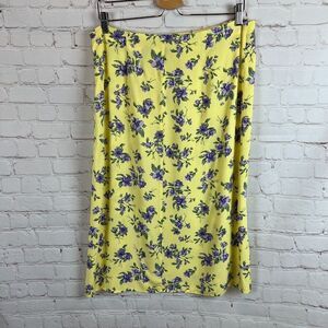 H&M Divided viscose yellow floral slit pencil button skirt size 12 NWOT