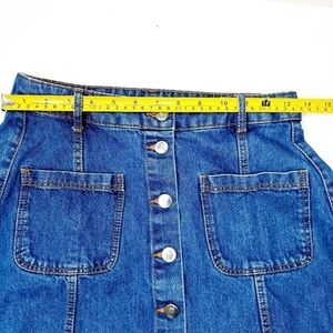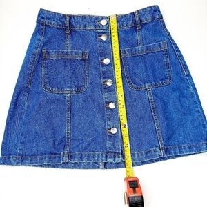 H&M Dividen A-Line Denim Skirt Button Front Blue Jean Mini High Waisted Cotton size 6.